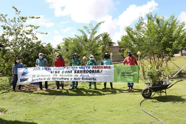 Em comemoração ao Dia Mundial da Água, a Prefeitura de São Miguel dos Campos, através da Secretaria Municipal de Agricultura e Meio Ambiente (Seama) e do SAAE, iniciou na manhã desta segunda-feira (22), uma ação de plantio de mudas às margens dos mananciais da fazenda Marcação, e dará continuidade nas fazendas Coité e Tomada no decorrer deste mês.