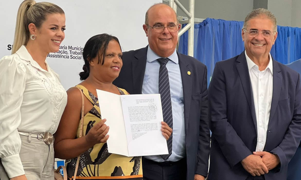 O Corregedor-Geral da Justiça, Desembargador Domingos de Araújo Lima Neto, o Coordenador do Projeto Moradia Legal, Desembargador Carlos Cavalcanti de Albuquerque Filho, e o Presidente da Associação dos Notários e Registradores do Estado de Alagoas (Anoreg), Rainey Barbosa Alves Marinho, o presidente da Câmara Legislativa, Diney Torres, além de vereadores e autoridades locais, também participaram da cerimônia.