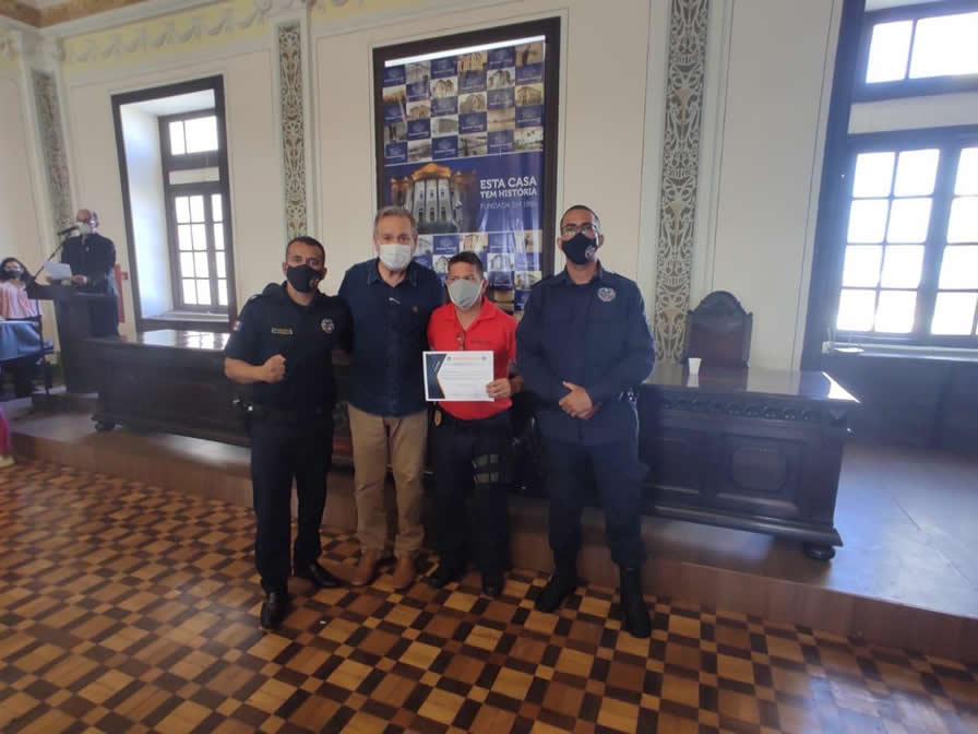 Nesta sexta-feira (28), ocorreu a formatura da 1ª turma do Curso de Aperfeiçoamento da Guarda Municipal de Maceió, na Associação Comercial. Quatro representantes da Guarda Civil Municipal de São Miguel dos Campos se formaram: o diretor Thiago Lima, o patrulheiro da ROMU, Richer Pinheiro, e os instrutores do Curso, Adriano Alves e Jailson Lima. O secretário municipal de Segurança Urbana, Carlos Oliveira, participou da cerimônia.