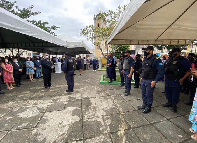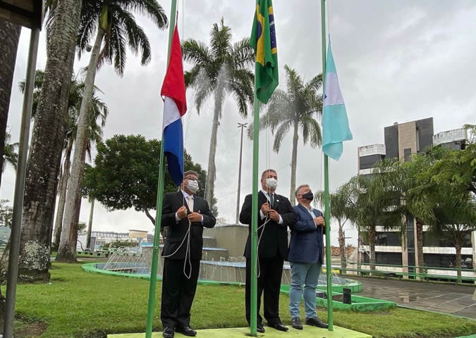 A cerimônia começou com a revista da Guarda Municipal, seguida pelo hasteamento dos pavilhões Nacional, Estadual e Municipal.