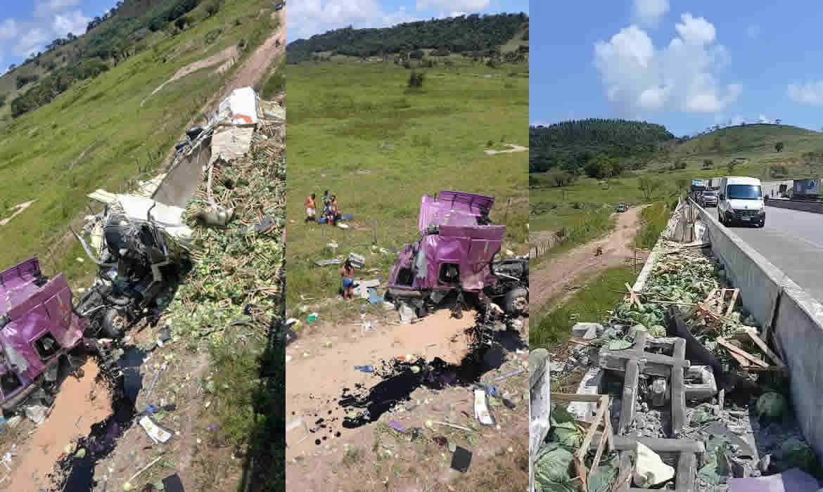 Acidente de graves proporções foi registrado durante a tarde deste domingo (7), na BR-101, quando o condutor de uma carreta carregada com carga de vegetais veio a perde o controle da direção fazendo o veículo pesado despencar de cima da ponte da Sinimbu, em Jequiá da Praia.