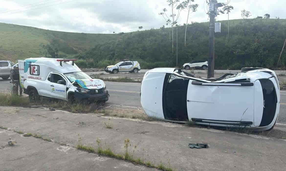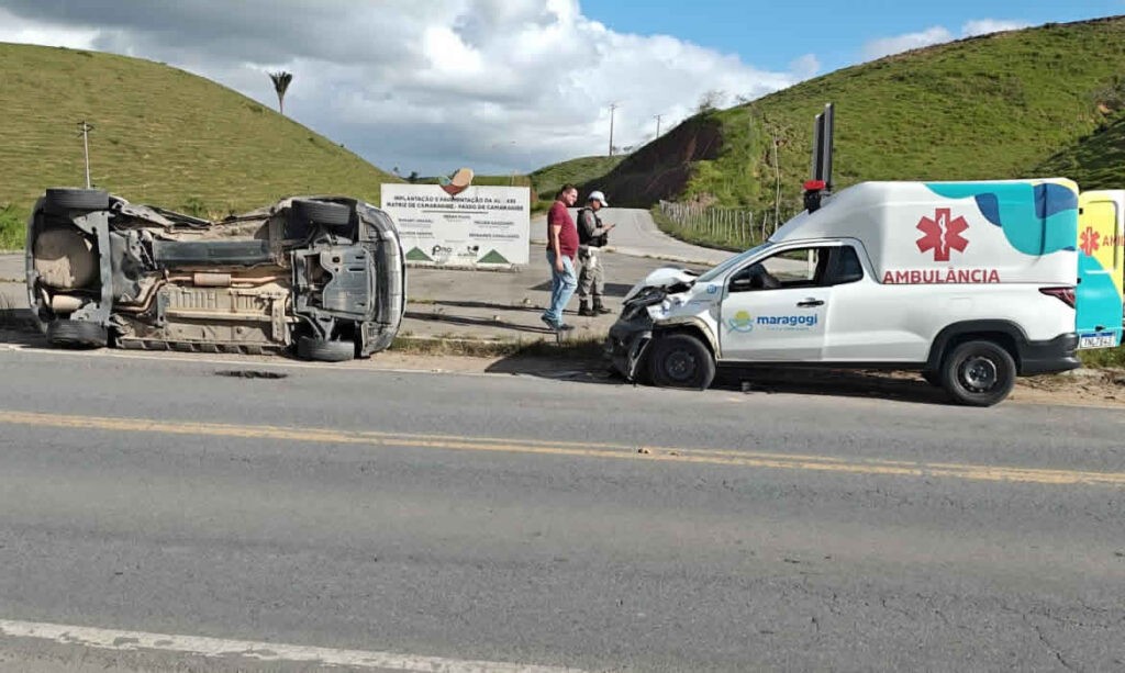 Durante o início da tarde desta sexta-feira (17), um grave acidente foi registrado na AL 105 em Matriz de Camaragibe, região norte do estado de Alagoas. O sinistro envolveu uma ambulância da prefeitura municipal de Maragogi e um carro de passeio.