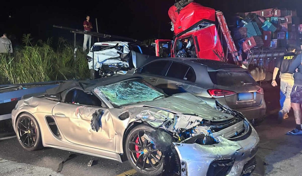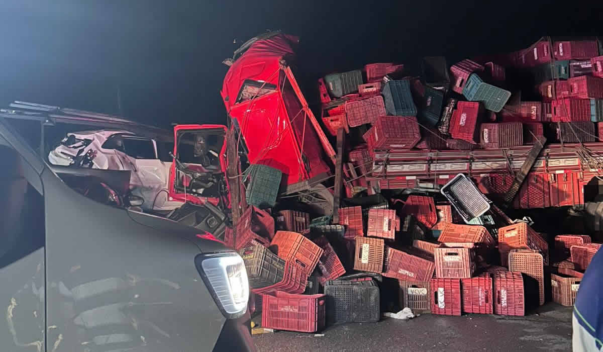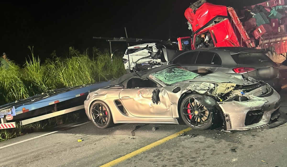 De acordo com as informações iniciais, o impacto ocorreu entre um caminhão que transportava frutas e um caminhão-guincho responsável pelo deslocamento de automóveis, entre eles modelos como Porsche, BMW e Chevrolet Onix. Os veículos transportados teriam saído da cidade de Curitiba antes do acidente.